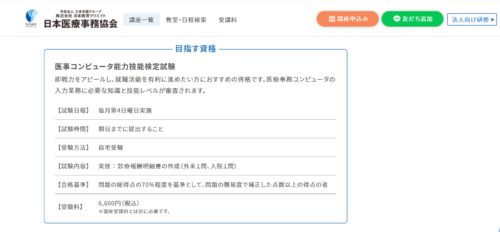医事コンピュータの入力業務に必要な知識と技能レベルが審査される資格試験す。